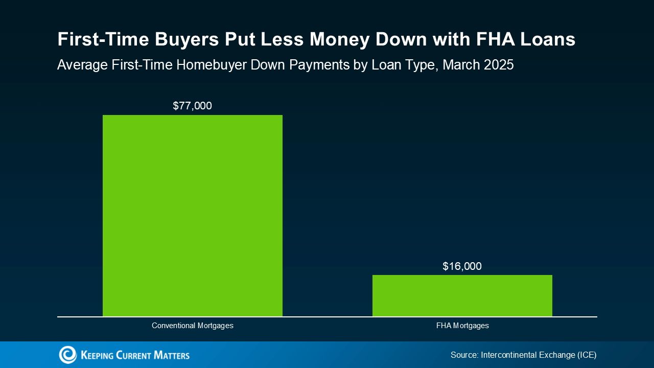 According to Intercontinental Exchange (ICE), the average down payment for first-time buyers using an FHA loan is just $16,000—compared to $77,000 with a typical conventional loan. That’s a major difference and a big reason why so many new buyers are choosing this path (see graph below).