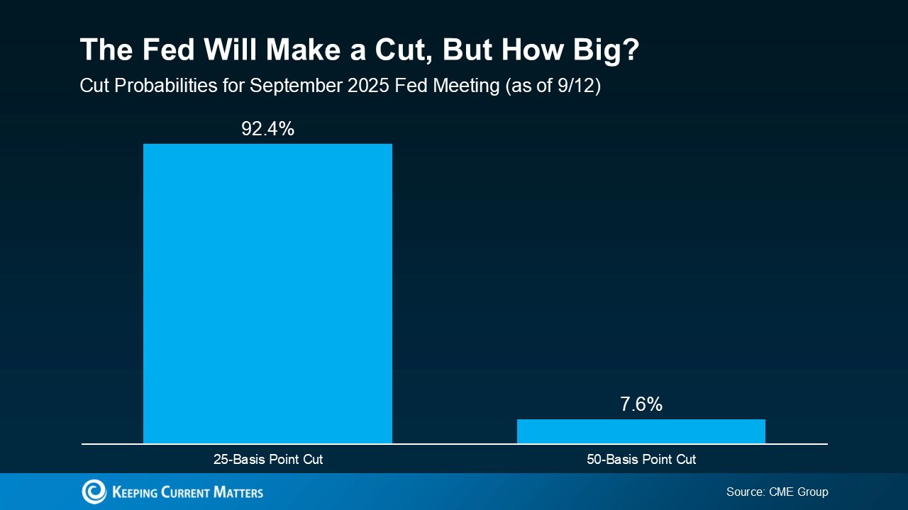 Markets agree. The CME FedWatch Tool shows nearly a 100% probability of a September cut. Right now, odds point to about a 92% chance of a small 25-basis-point cut and an 8% chance of a larger 50-basis-point cut.