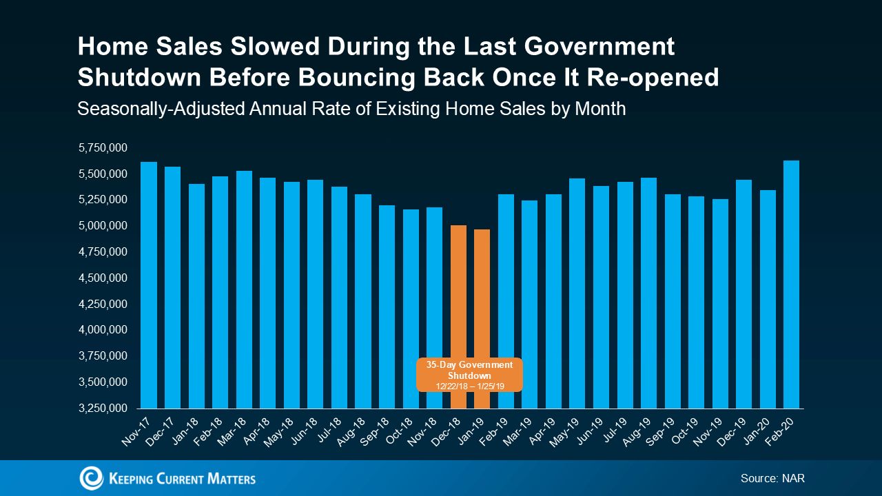 History shows the housing market is remarkably resilient. During the last major government shutdown at the end of 2018—which lasted 35 days—sales activity dipped only slightly, then bounced back as soon as the government reopened.