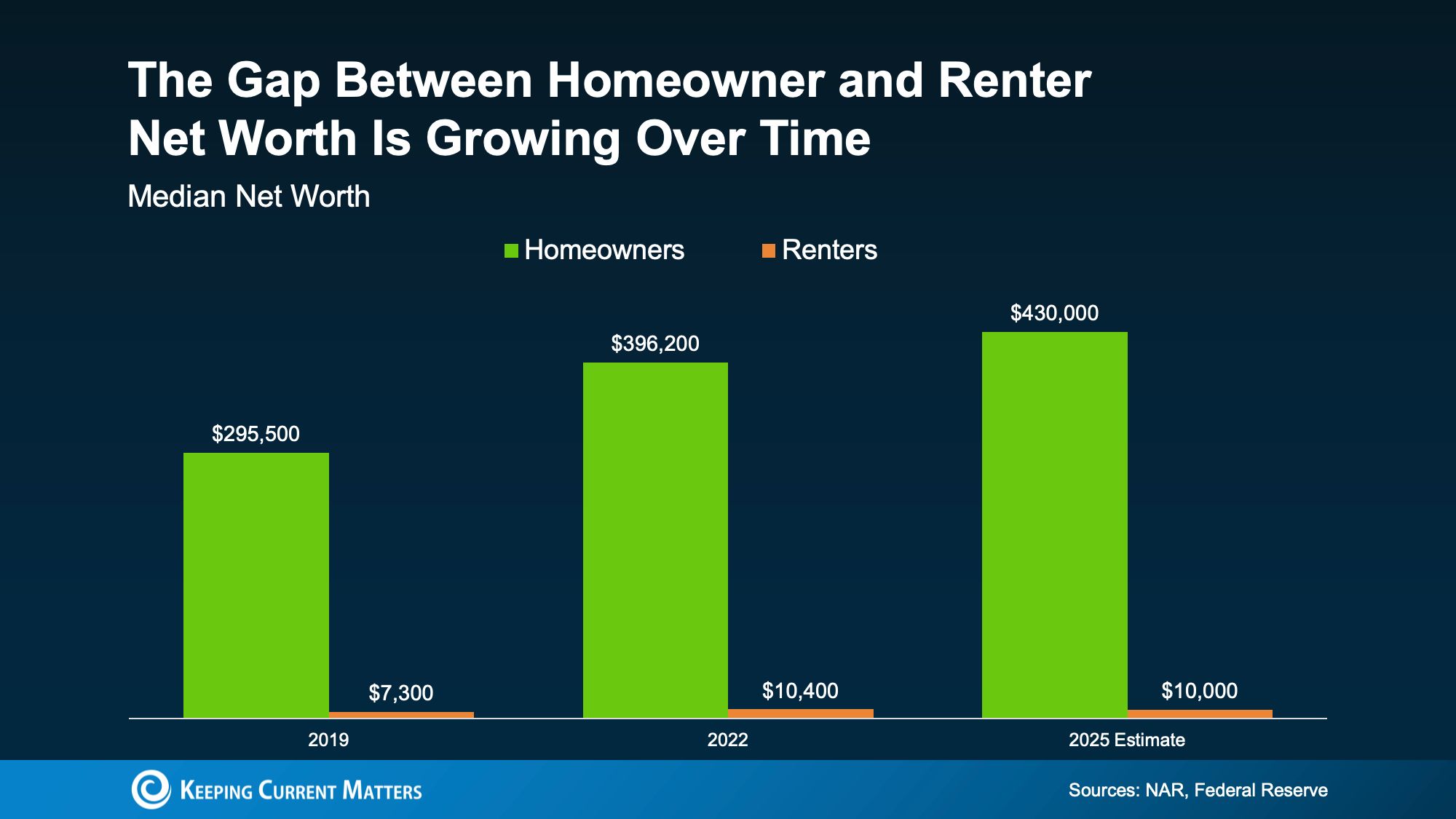 If you look at net worth data over the years, the pattern becomes clear: homeowners continue building wealth, while renters often struggle to gain the same financial ground (see graph below).