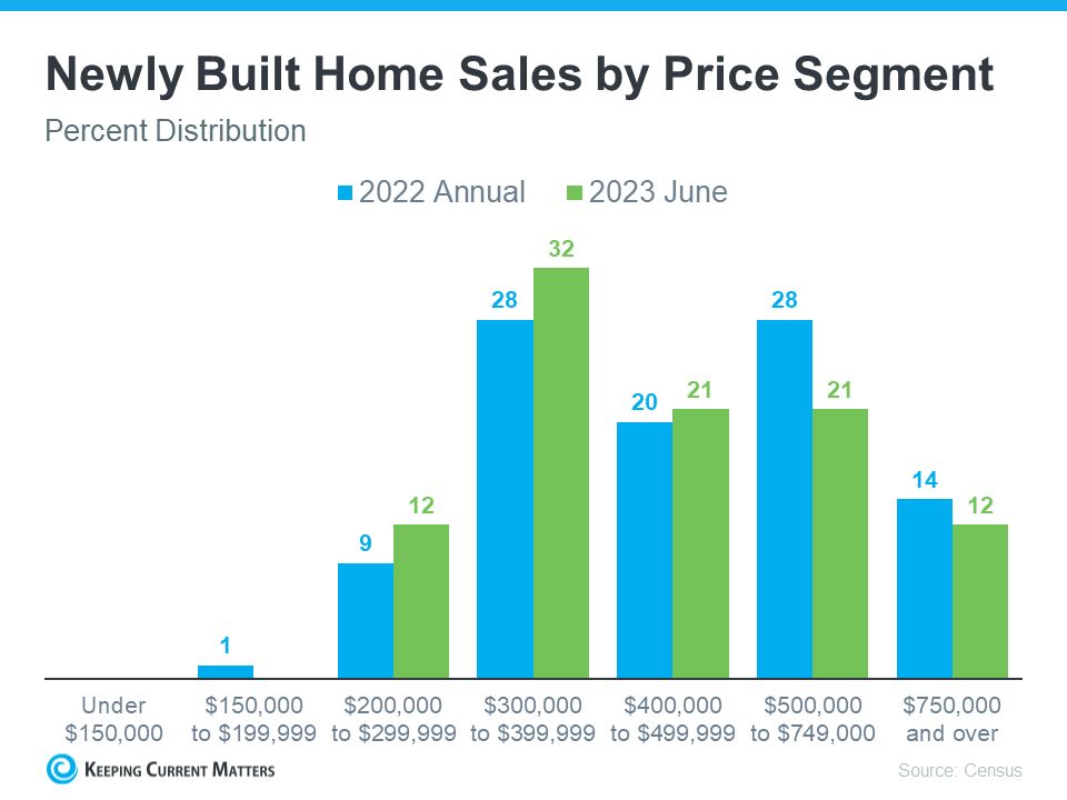 Utilizing the most recent data from the Census, the graph below illustrates that in June, a greater proportion of newly constructed home sales in the nation fell within lower price ranges compared to 2022: