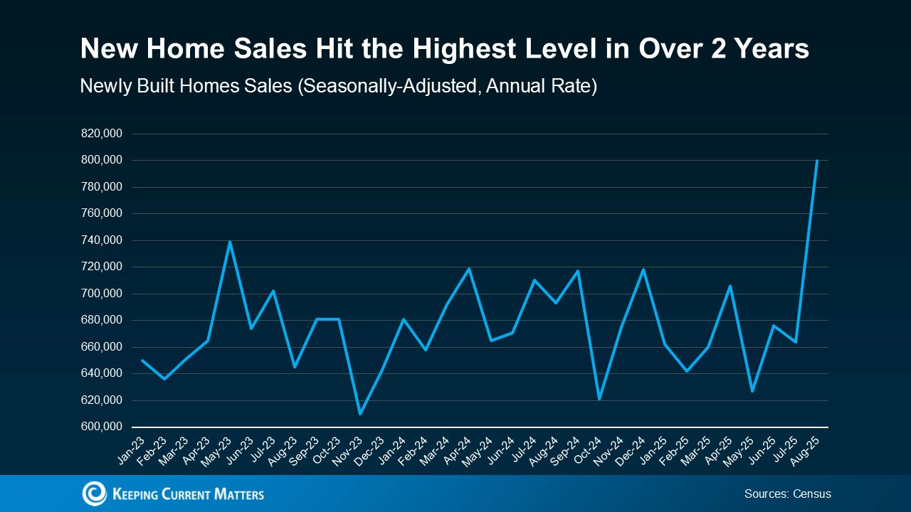 A noticeable shift is happening in today’s housing market: more buyers are gravitating toward new construction. It’s not just for the sleek designs or updated features — it’s because builders are rolling out meaningful incentives. Those savings are motivating buyers, and it shows — new home sales have climbed to their highest point in more than two years (see graph below).